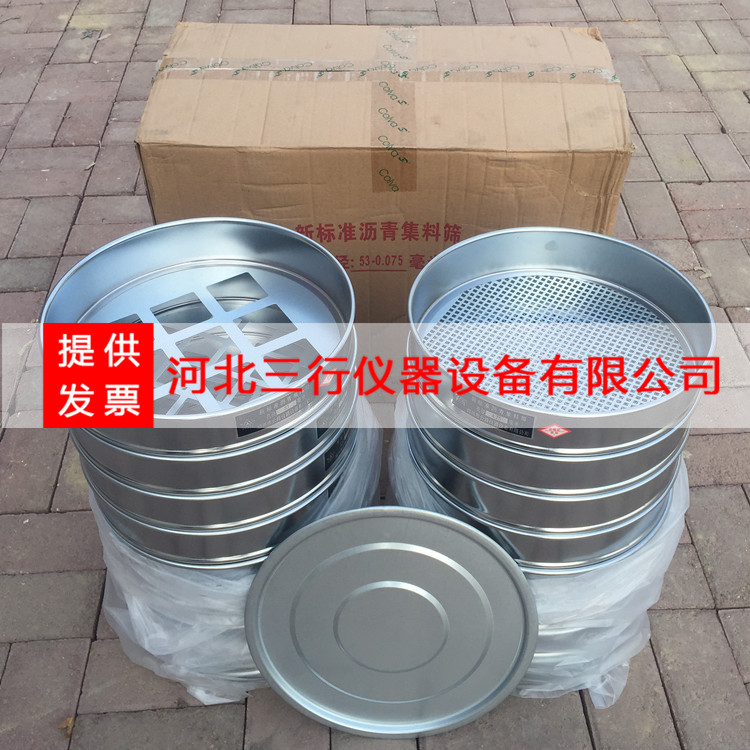 新标准石子筛常用孔径:9.5mm、13.2mm、16mm、19mm、26.5mm、31.5mm、37.5mm、53mm、63mm、75mm、90mm